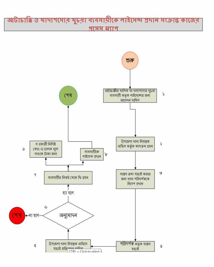 | ৪ | আটাচাক্কি ও খাদ্য শস্যের খুচরা ব্যবসায়ীকে লাইসেন্স প্রদান সংক্রান্ত কাজের প্রসেস ম্যাপ | দেখুন |